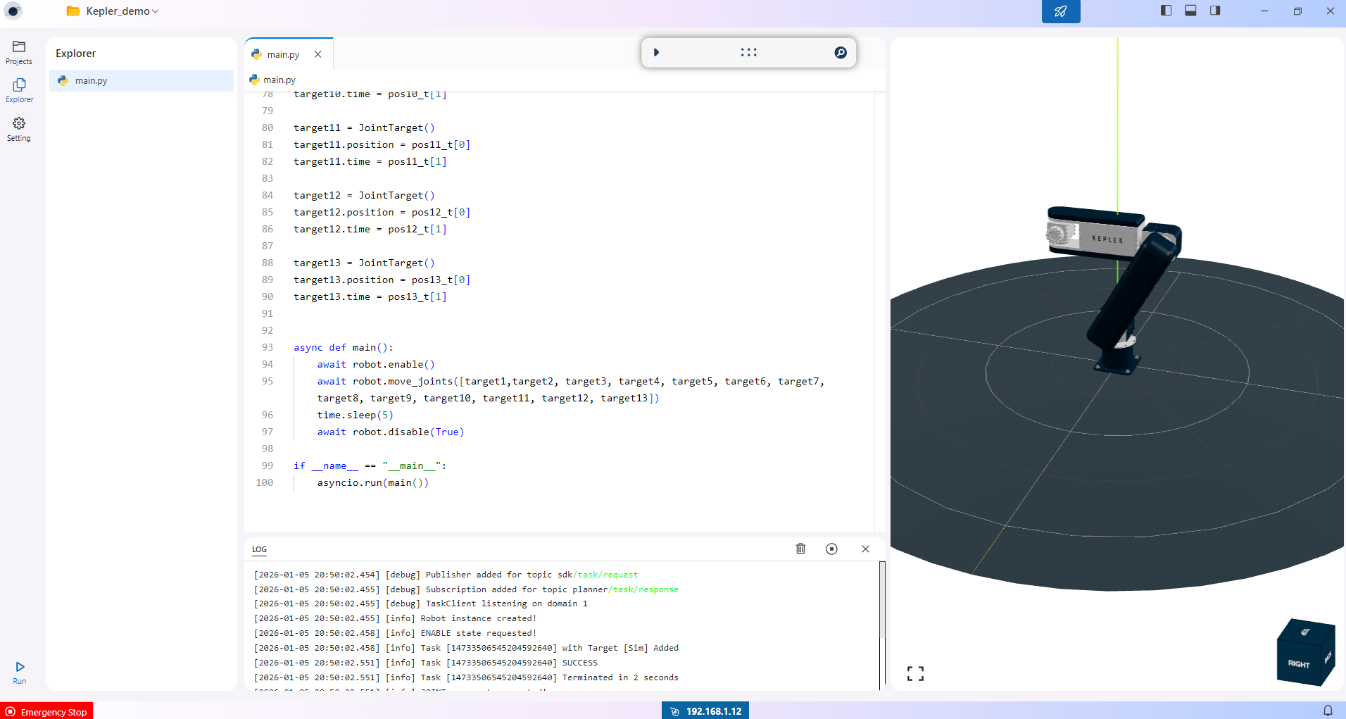 Program Kepler directly in Python with simple, human-readable scripts. Control movements and automate tasks smoothly.